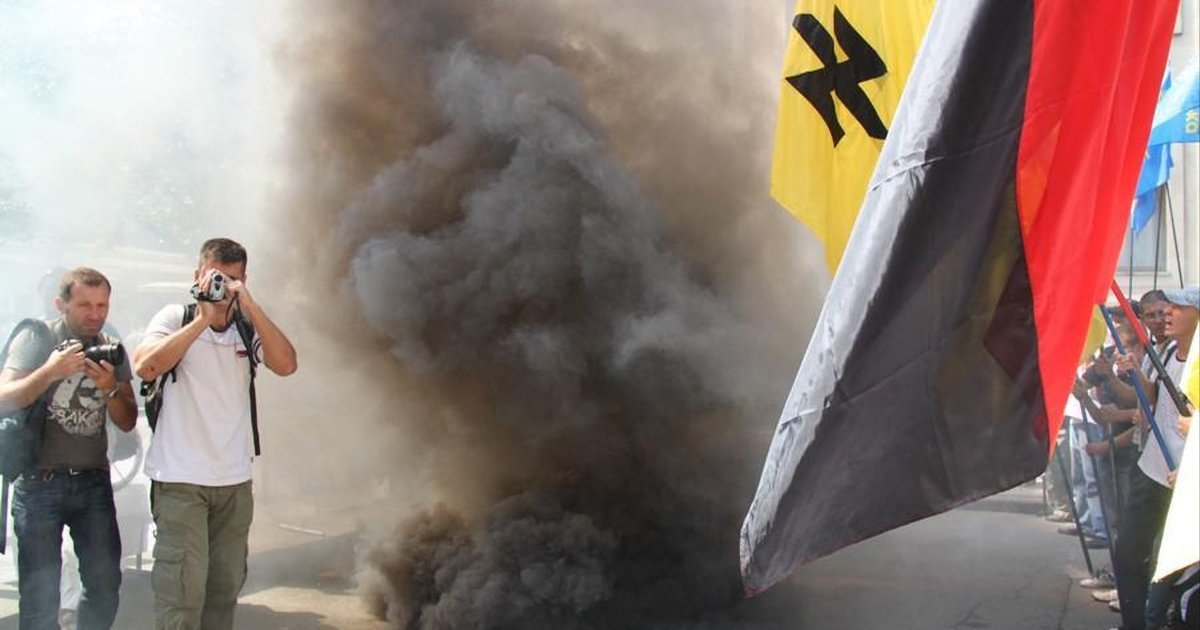 Администрацию Президента забросали дымовыми шашками. ФОТО+ВИДЕО