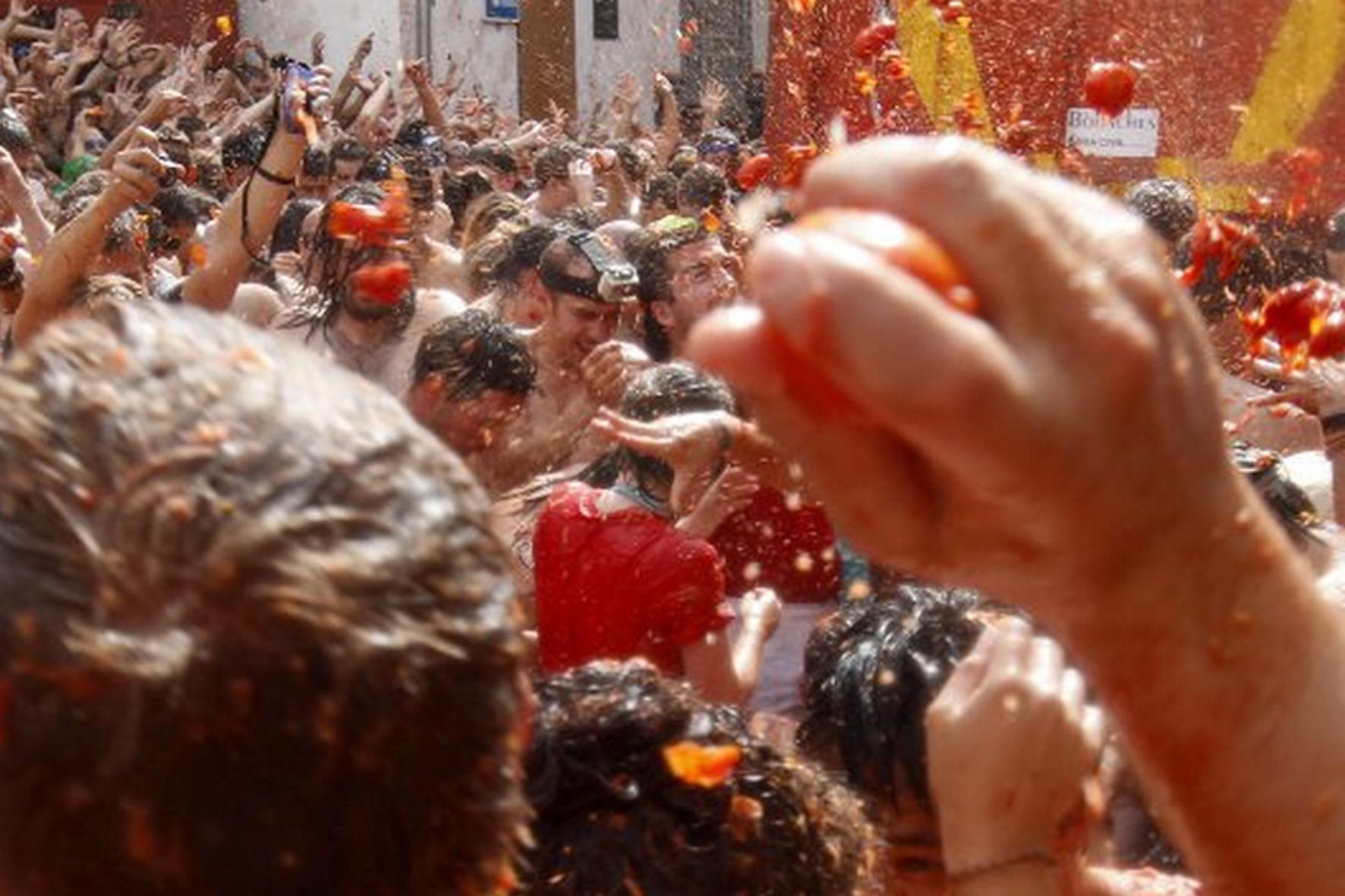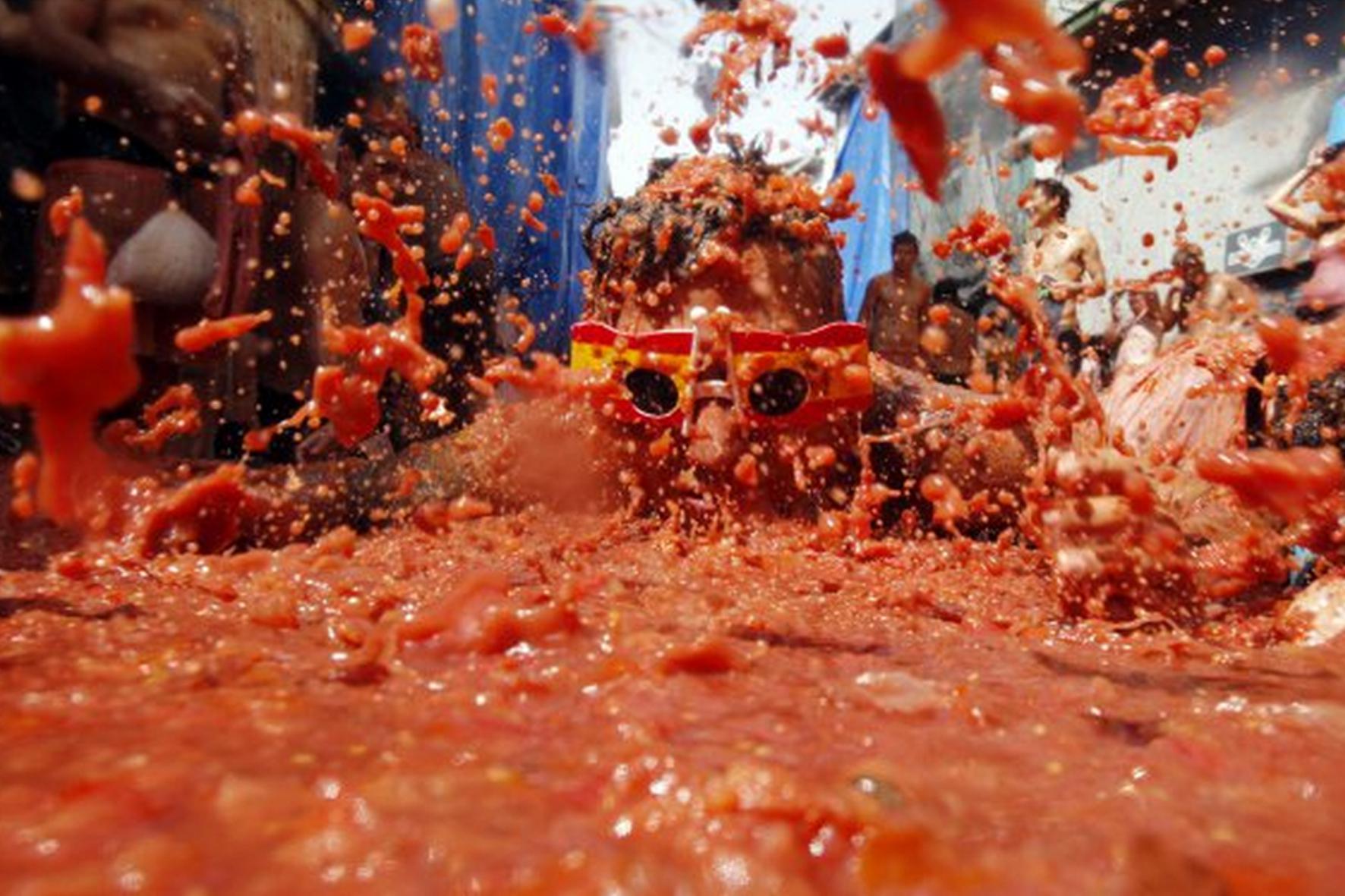 Сам помидорный бой проходит на центральной площади напротив здания мэрии и длится ровно час. За это время стены ближайших домов становятся красными, а помидорная смесь на земле доходит до щиколоток.