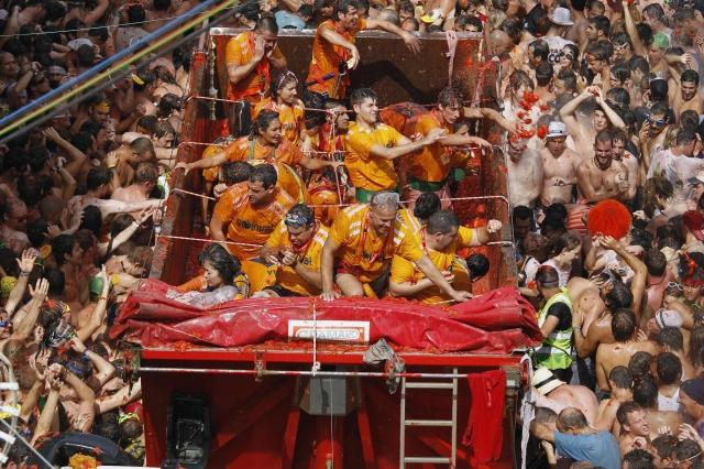 Небольшой городок Буноль в Испании превратился в поле помидорного боя - там состоялся фестиваль "Томатина".