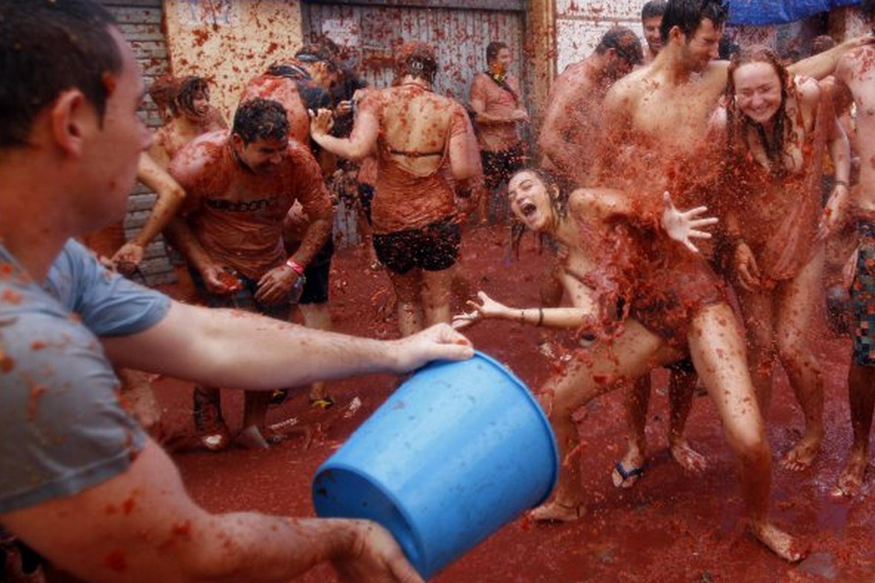 "Томатина" заканчивается купанием в томатном соке в специальном бассейне в центре города. После этого разыгрывают окорока традиционной иберийской свиньи и заканчивается праздник фейерверком.