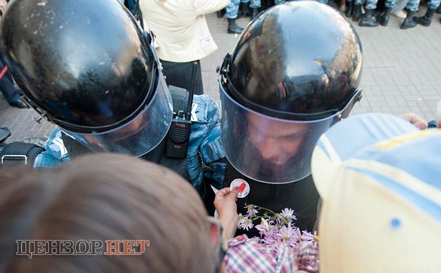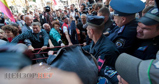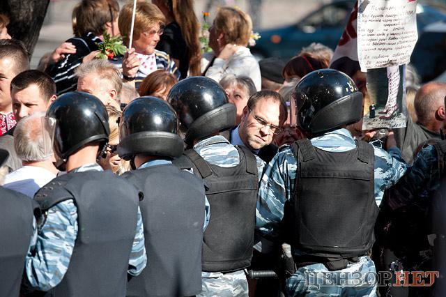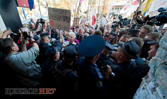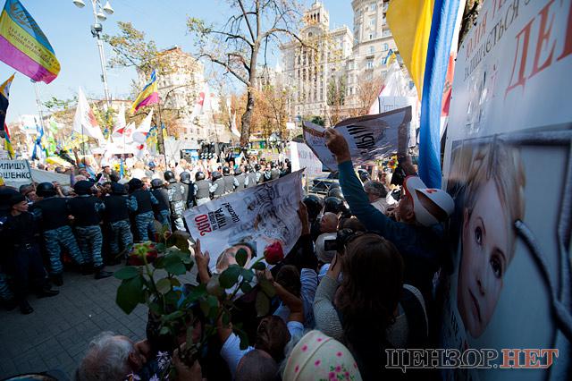 Сторонники Тимошенко попытались пробиться к стенам Печерского суда. Они прорвались через ограждения, однако "Беркут" их оттеснил.