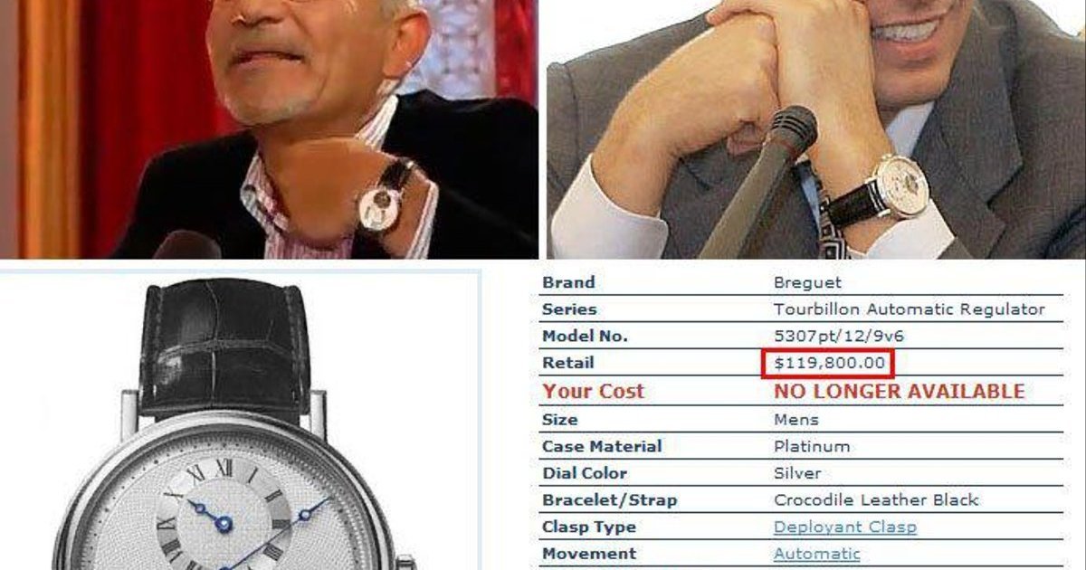 Швейцарские часы, которые можно увидеть на руке у Шустера и Хорошковского, стоят почти 120 тысяч долларов. Его циферблат изготовлен из платины, а ремешок - из крокодиловой кожи.