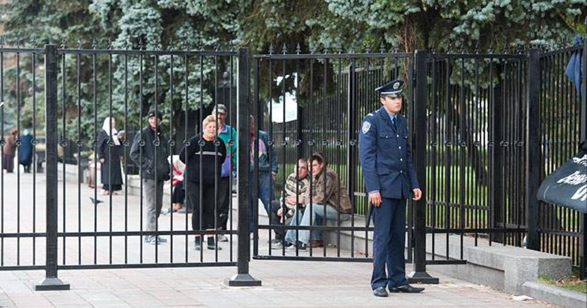 Таким образом, Верховная Рада с одной стороны полностью ограждена более чем 2-метровым забором. На его воротах висит большой амбарный замок.