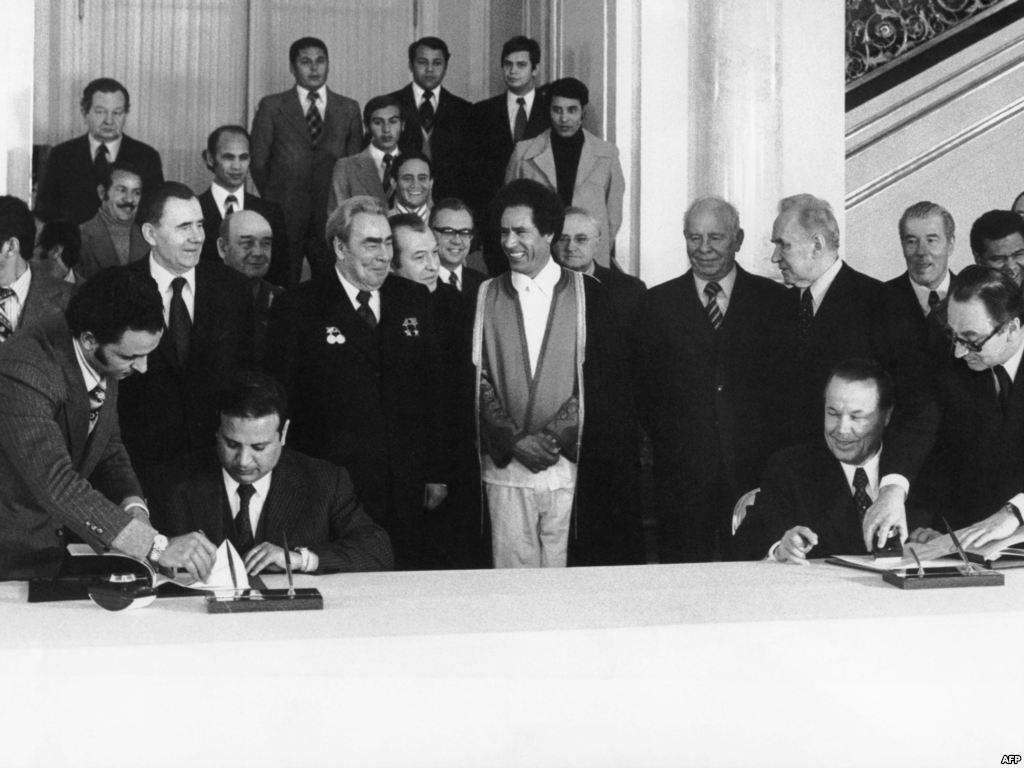 На этом фото 1970 года — ливийский лидер, 27-летний полковник Муаммар Каддафи в военной форме. Он руководит Ливией с тех пор, как пришел к власти в результате бескровного военного переворота 1969 года. (AP)