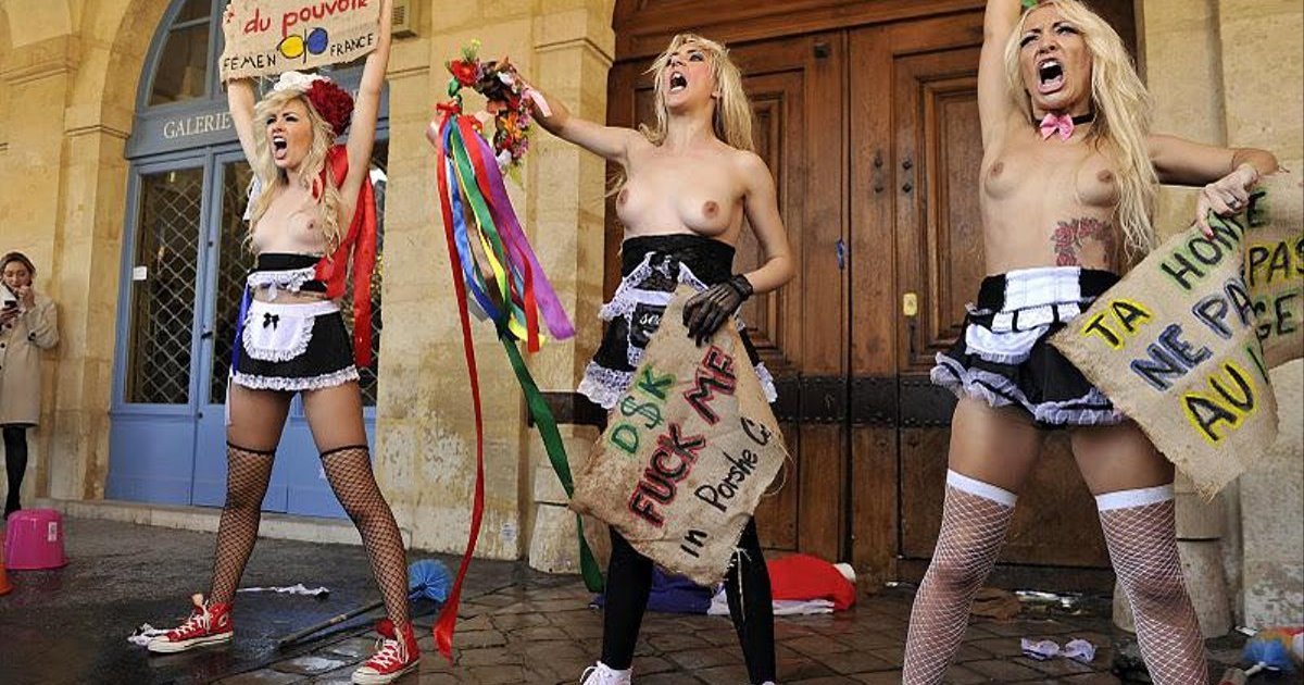 Активистки женского движения FEMEN, переодетые нью-йоркскими горничными совершили секс-атаку на резиденцию Доминика Стросс-Кана в Париже.
