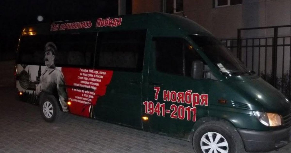 Маршрутное такси, украшенное изображением Иосифа Сталина, вышло в рейс в понедельник, 7 ноября в Севастополе.
