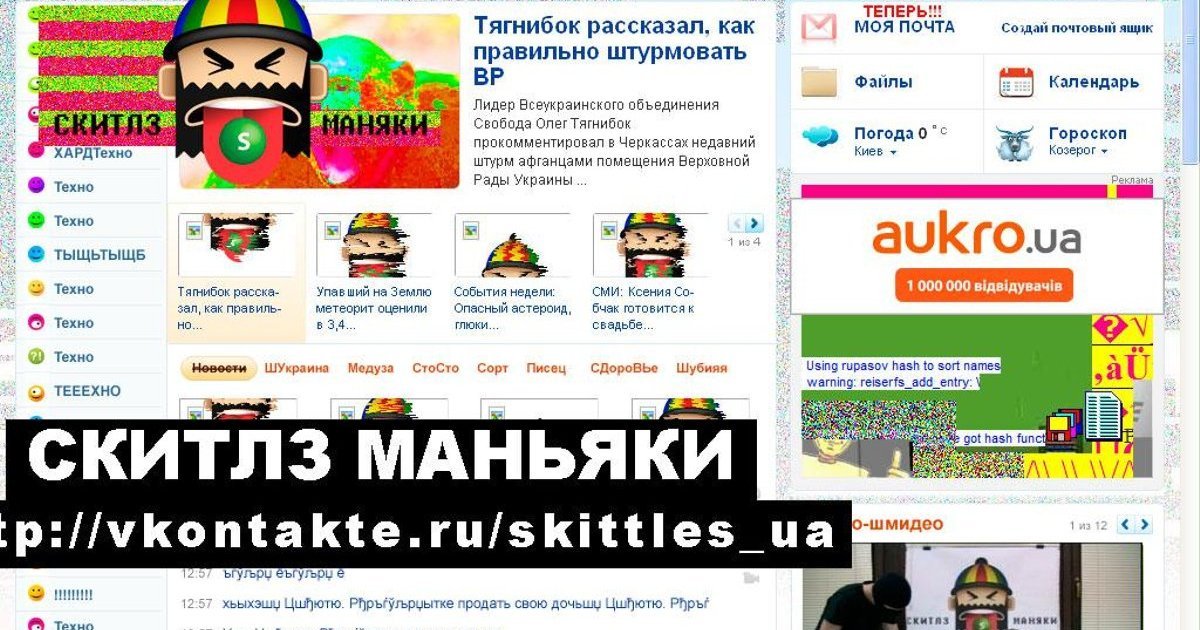 На главной странице сайта расположена визитка «Скитлз маньяки», ниже расположен адрес сайта хакеров в соцсети "В контакте", передает Цензор.НЕТ.