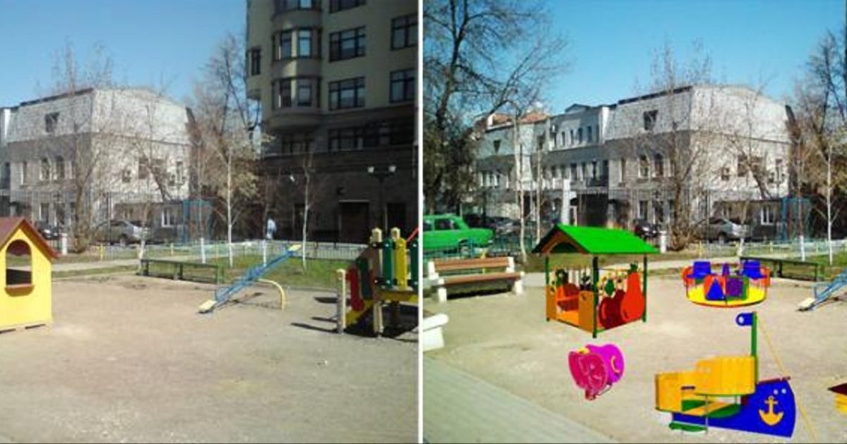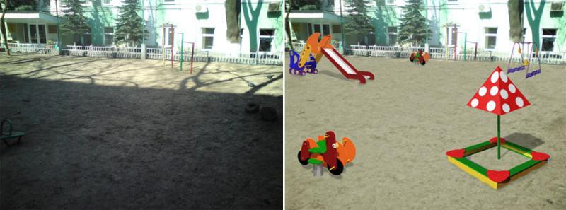Потому что фотографии «после» сделаны с помощью графического редактора. Все вот эти заборчики, горочки и песочницы нарисованы.