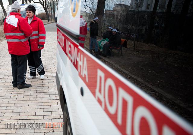 Сегодня к голодающим чернобыльцам в Мариинский парк Киева приехала скорая помощь.