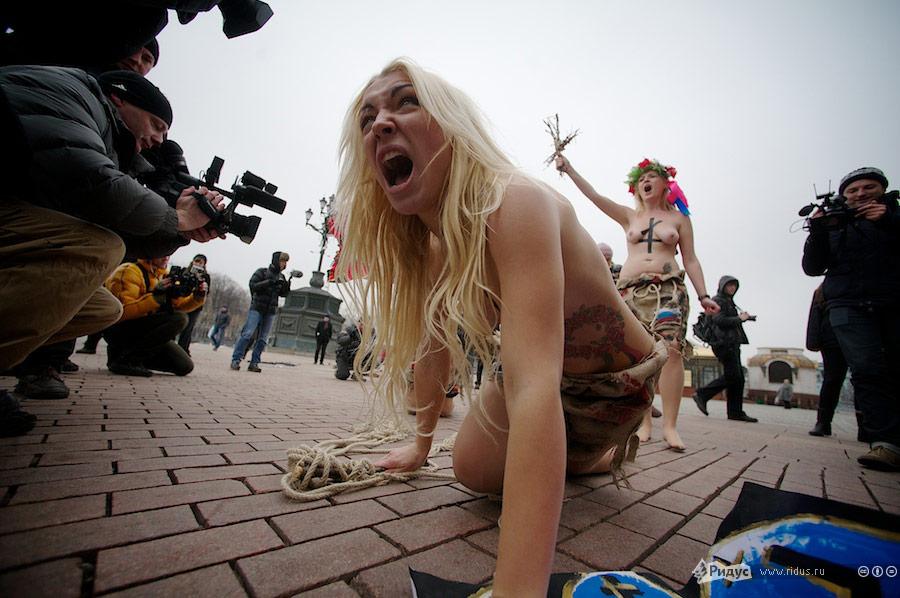 Femen разделись перед окнами Путина и Медведева. ФОТОрепортаж