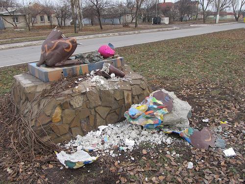 В Луганске разбили "Писанкового льва" на мелкие кусочки. ФОТОрепортаж