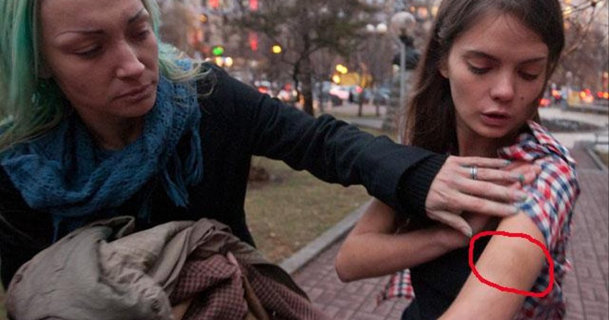 "Серьезных синяков нет, потому что они (КГБшники) били так, что их не осталось", - заявила одна из активисток, передает Цензор.НЕТ.Также, на фото, сделанных во время акции Femen, отчетливо видно синяк на руке одной из активисток, который после был использован ею в качестве доказательства об избиении.