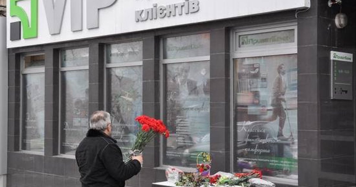 В Донецке к "ПриватБанку" приносят цветы в память о погибших. ФОТО