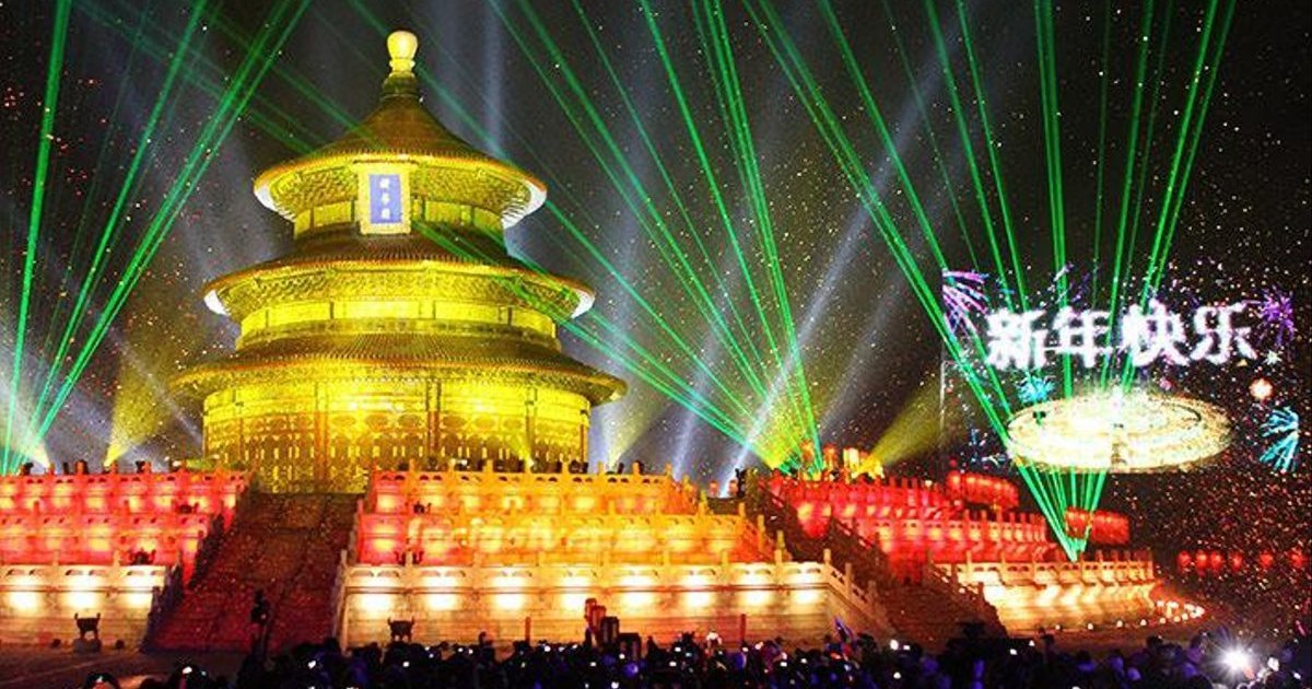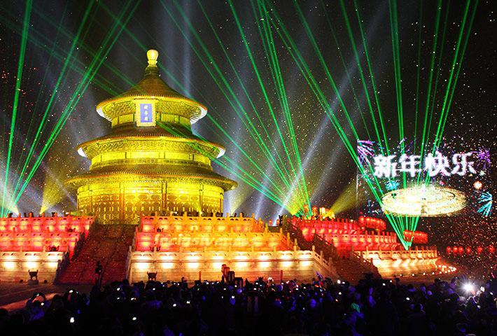 Азия и Океания встретили не менее красочно новый 2012 год. Лазерное шоу у Храма Неба в Пекине.