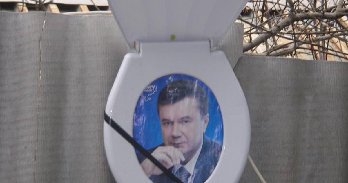 В городе Алупка в частном секторе появилось фото Президента Виктора Януковича, вставленное в ободок от унитаза.