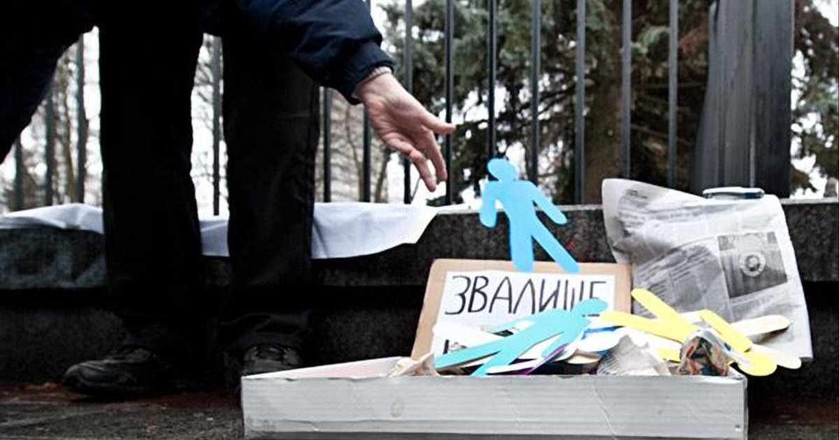 Активисты выкинули "преступных депутатов" на свалку истории, сравнив их с наркоманами, которые постоянно требуют новых доз и выносят все из дома.