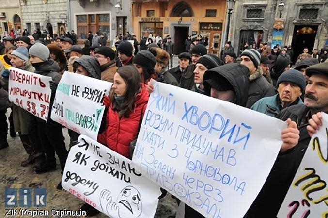 Во вторник, 17 января, около здания Львовского горсовета под лозунгом «Спасибо мэру Садовому за то, что пешком иду домой!» состоялось народное вече на тему ликвидации новой транспортной системы во Львове.
