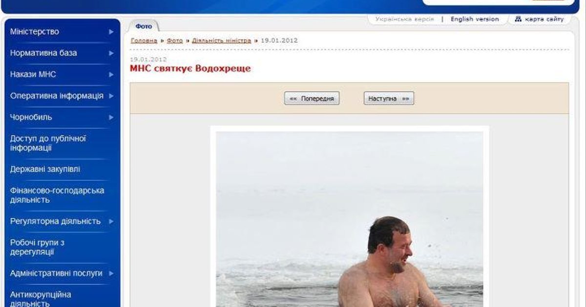 На сайте МЧС Украины в разделе "Деятельность министерства" появилось фото министра чрезвычайных ситуаций Виктора Балоги в трусах.