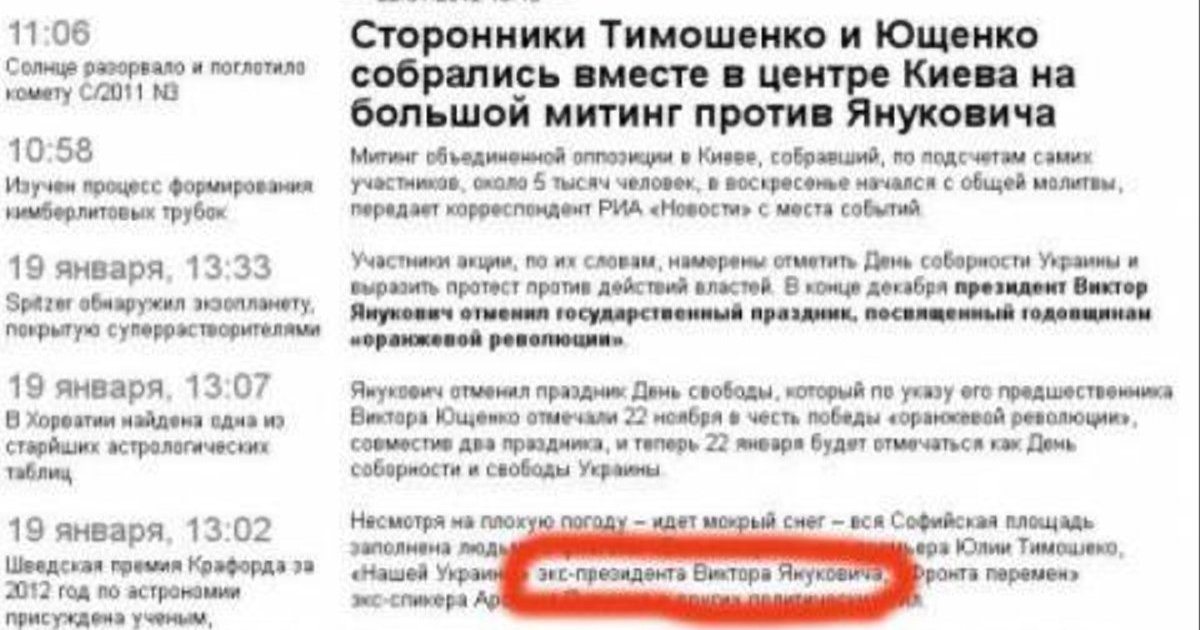 Один из российских новостных сайтов назвал президента Виктора Януковича экс-президентом.