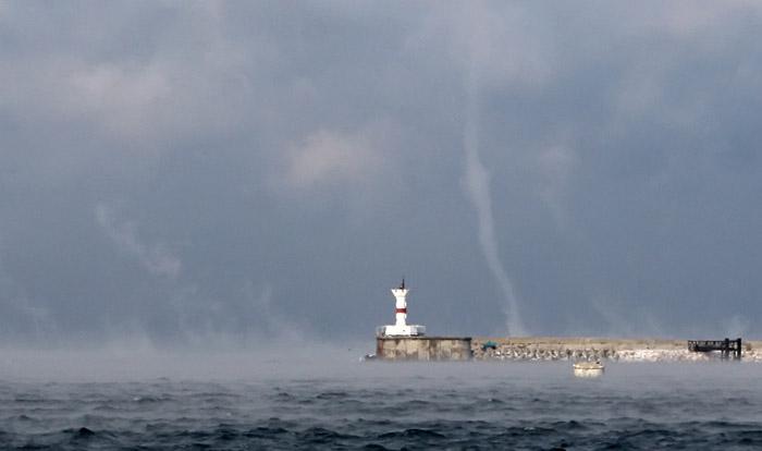 Вчера жители могли наблюдать смерчи над бухтой в Севастополе.