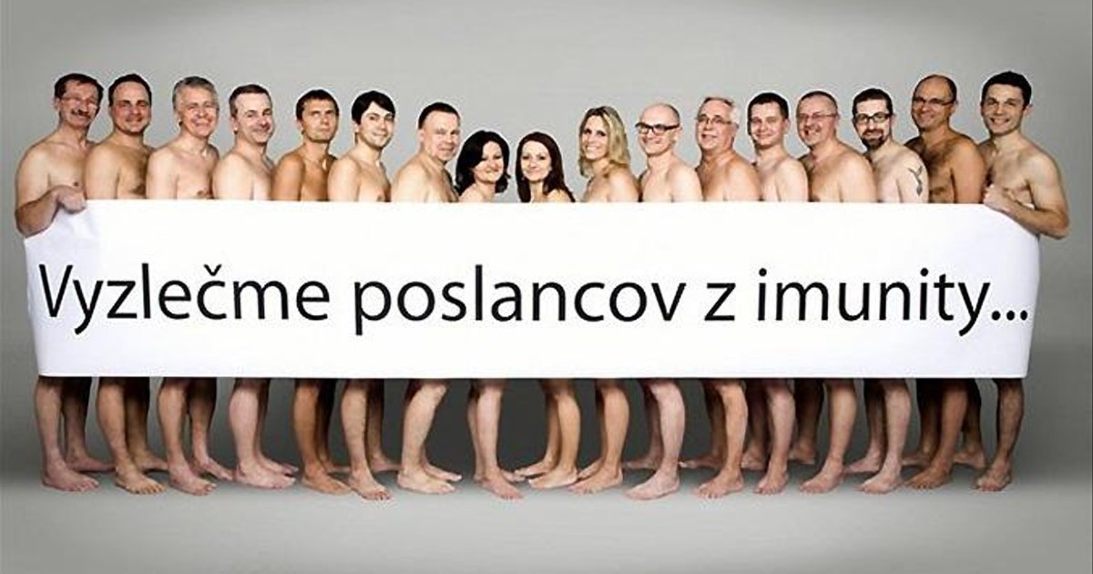 Словацкие депутаты разделись догола и в таком виде сфотографировались, выстроившись в ряд и прикрывая интимные места лишь плакатом с надписью «Пусть парламентарии откажутся от своего иммунитета»,- сообщает Цензор.НЕТ со ссылкой на spravy.pravda.sk.