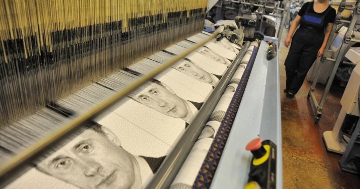 Автоматический ткацкий станок на фабрике «Узор», который выпускает гобелены с портретом Владимира Путина.