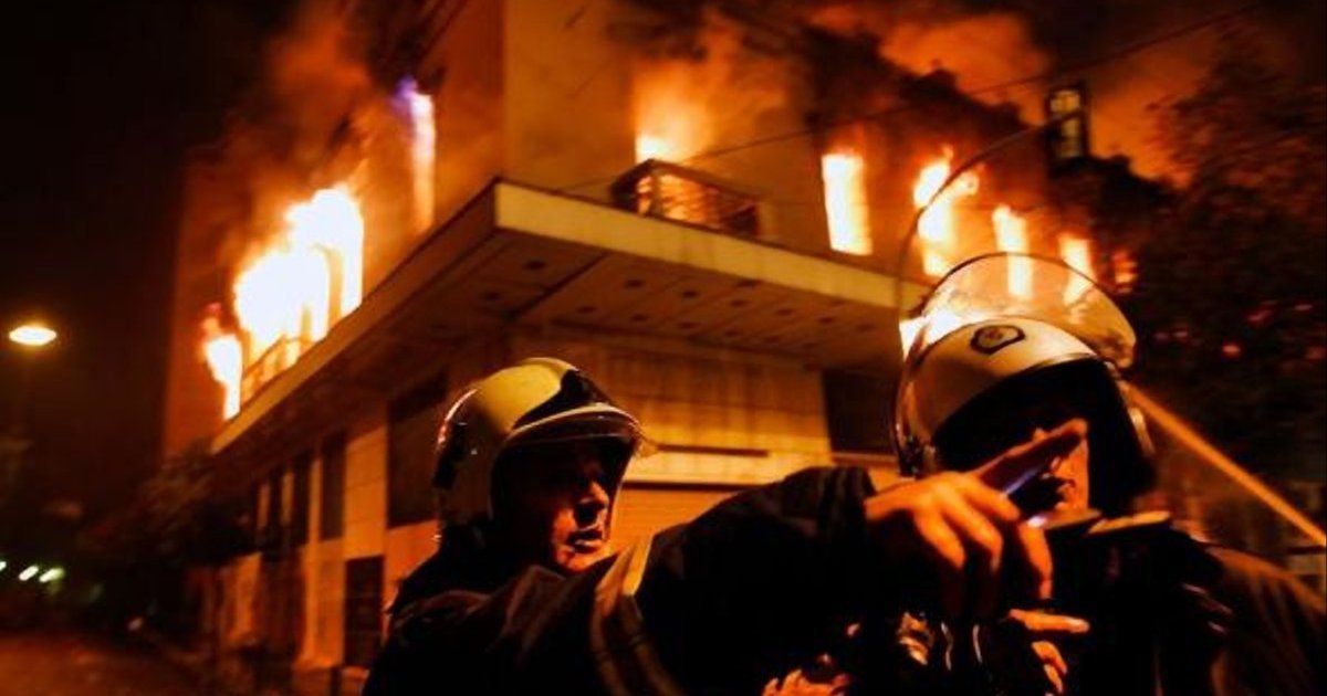 В Афинах, в центре греческой столицы, горят уже более 40 зданий магазинов, банков, кафе и других объектов. Зарево от пожаров освещает город, а дым застилает освещенный прожекторами афинский Акрополь.