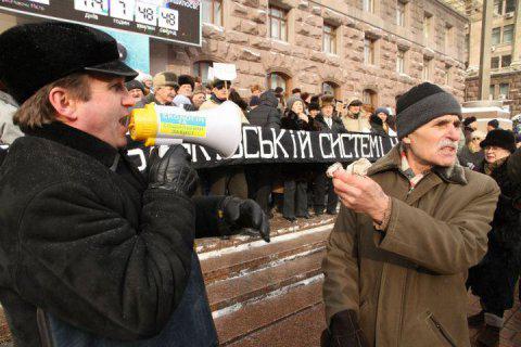 Сегодня около 80 человек провели акцию протеста у здания Киевской городской государственной администрации.