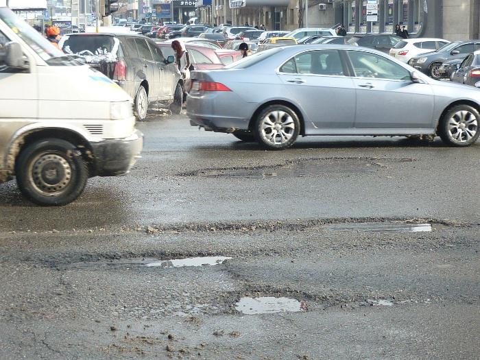 Дорога, положенная меньше как полгода назад, к Евро-2012 в центре Киева на ул. Горького "обростает" новыми ямами.