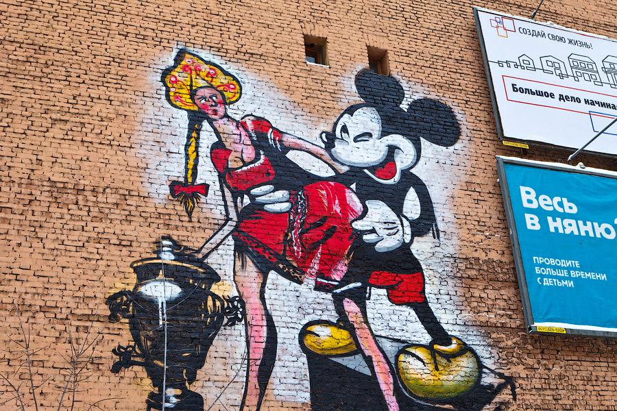 Россию изнасиловал Микки Маус! - креативная агитация за Путина в Москве. ФОТО