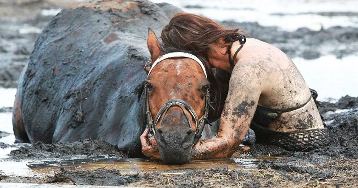 В течение трех часов Николь старалась удержать Астро на поверхности, но лошадь всё глубже засасывало в грязь, передает Цензор.НЕТ со ссылкой на photoshtab.ru.