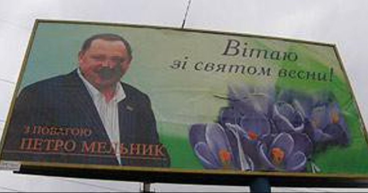 Лицо скандального регионала Мельника изуродовали на поздравительном бигборде. ФОТО