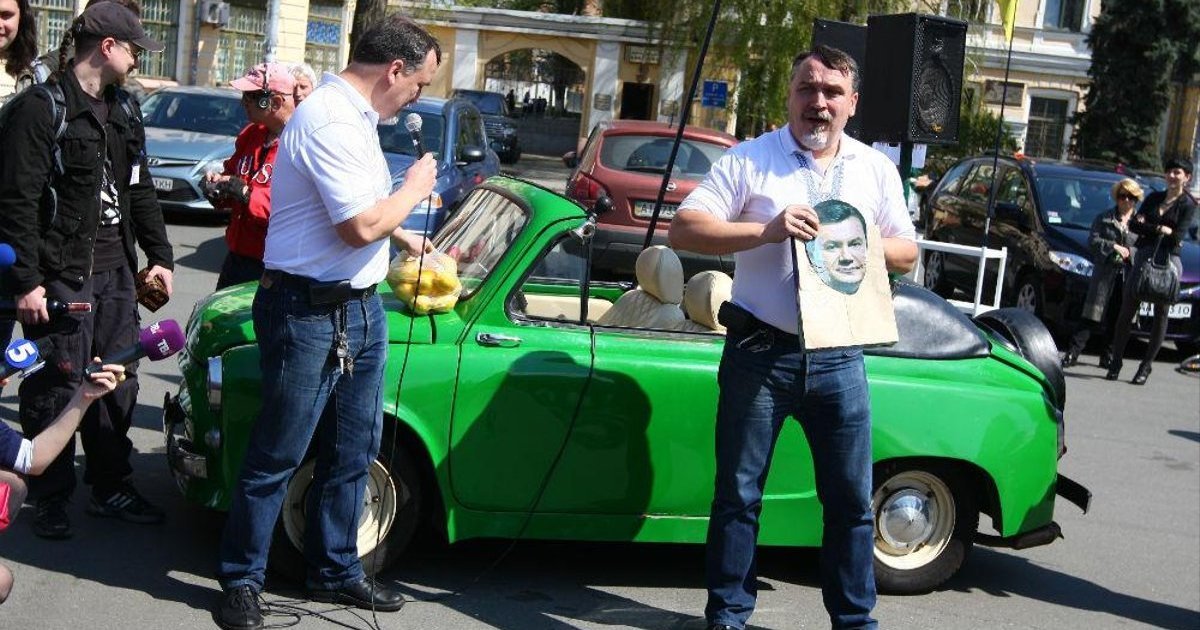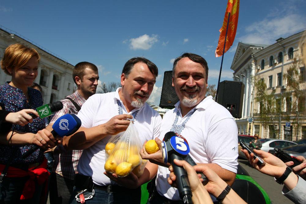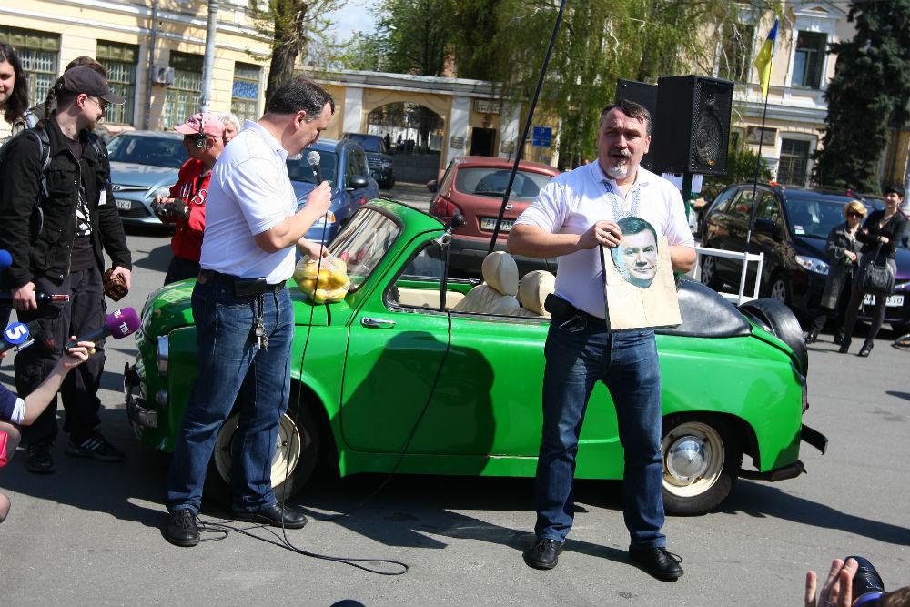 23 апреля столичные писатели вручили президенту Виктору Януковичу "16 лимонов". Сделали это на Контрактовой площади во время писательского автопробега.