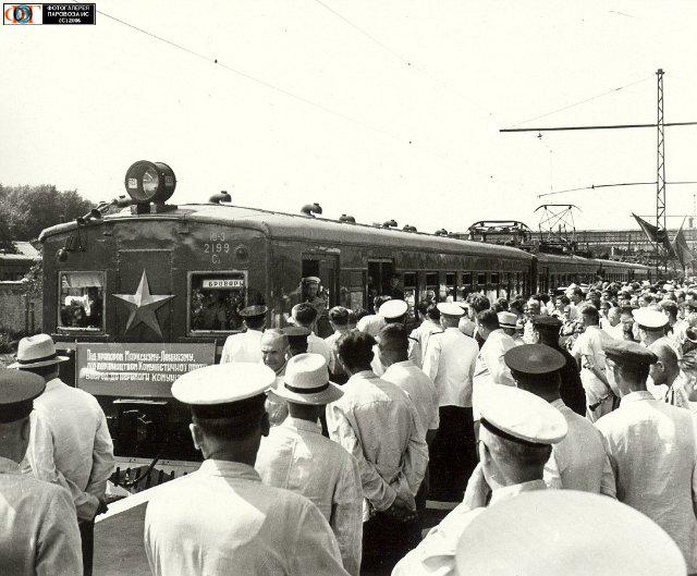 Фото 1955 года.Обратите внимание на металлическую опору будущей контактной сети, самих проводов еще пока нет.