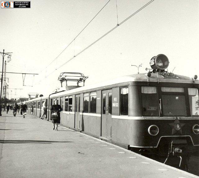 Ранние советские электрички СР (постоянного тока),угловатые и некрасивые.Такие еще даже в 80-х годах ходили на Донецкой дороге.