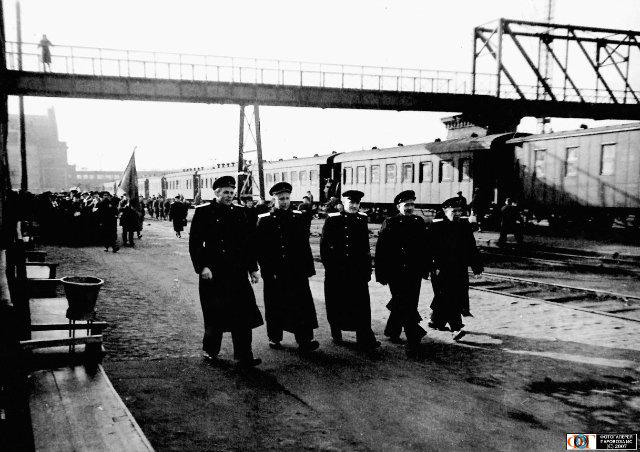 Еще одна фотка первых послевоенных лет.Переходный мостик через пути,построенный еще до войны и снесенный совсем недавно,в 2000 году.