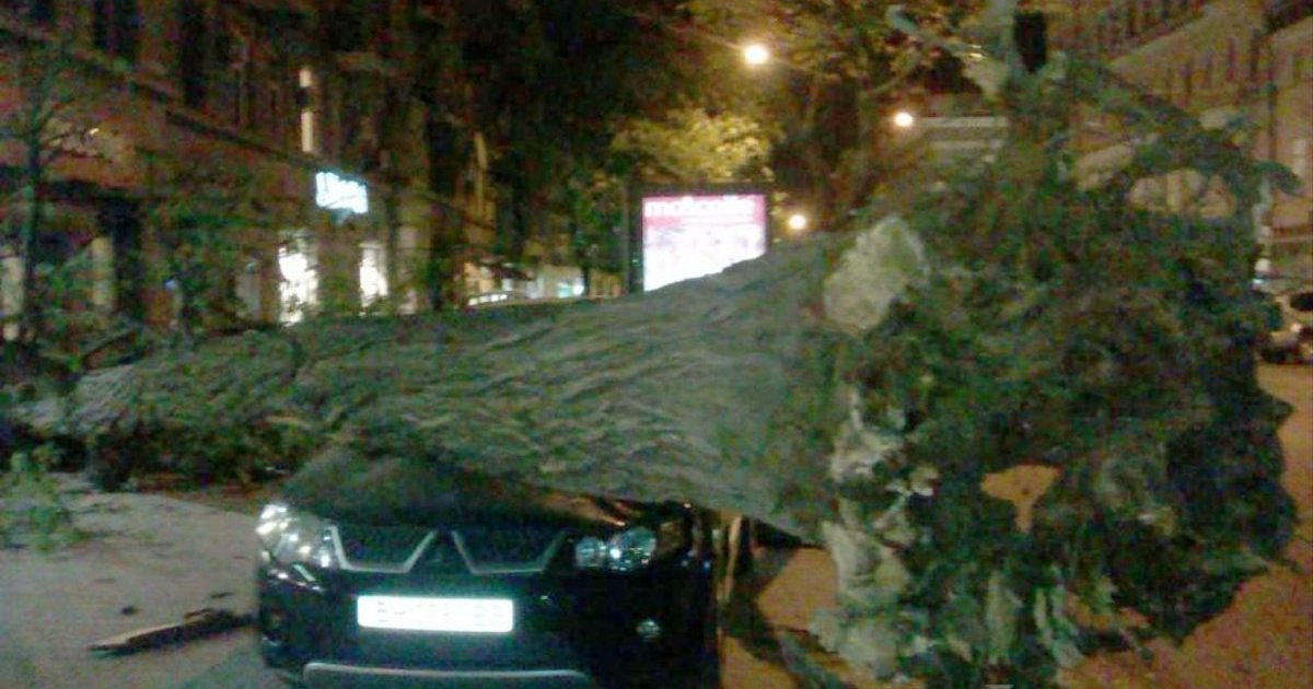 В центре Одессы огромное дерево рухнуло и раздавило иномарку. ФОТО