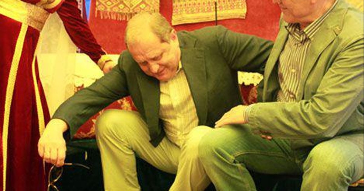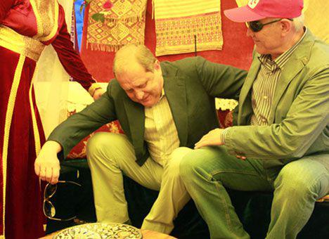 После этого Умеров похвастался главе Совмина, выращенными в Бахчисарайском районе овощами. В частности, он подвел Могилева к корзинам с помидорами, один из них премьер даже взял в руки и занюхал. Далее Абдуллаев повел своего шефа в палатку, обустроенную в национальном стиле с крымскотатарскими коврами, характерными низкими столами, расшитыми диванными подстилками. Так, усаживаясь на диван в палатке, под Могилевым провалилось сиденье, но разместившимуся рядом Абдуллаеву удалось удержать премьера от полного падения перед фото и видеокамерами. Данный конфуз Могилева не смутил, он поулыбался и сказал: «Славянские мужчины не такие хрупкие!».