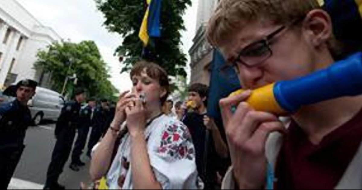 С мячами, дудками и барабанами активисты общественности разместились вокруг здания парламента, - передает Цензор.НЕТ.