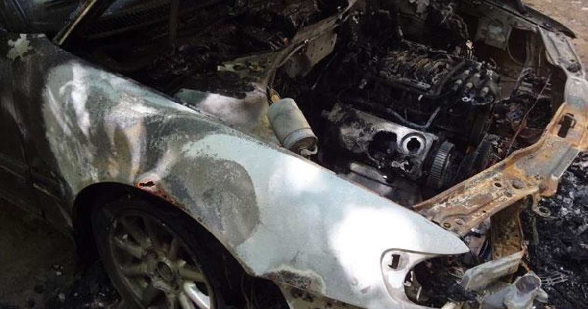 Сегодня ночью в том же дворе сгорела старенькая Audi.