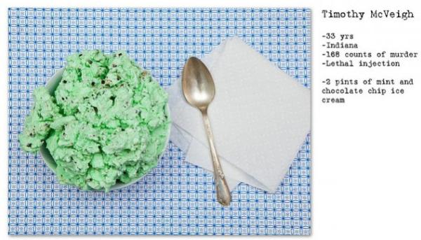 Тимоти Маквей, организатор теракта в Оклахома-сити в 1995 году, забравшем жизнь 168 людей, среди которых были дети до шести лет, попросил всего лишь вазочку с мятным мороженным.