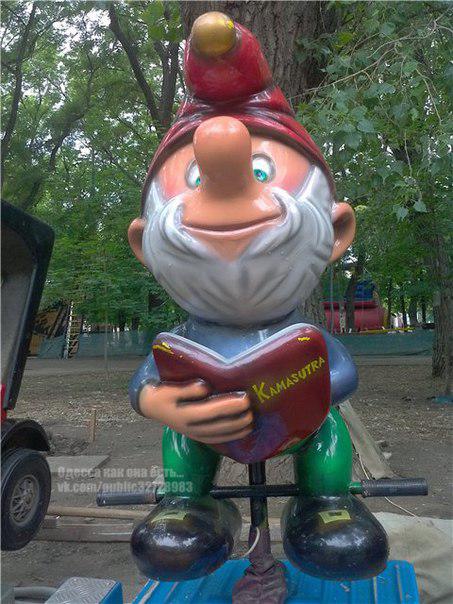 Гном с "Камасутрой" развлекает детей в Одессе. ФОТОФАКТ