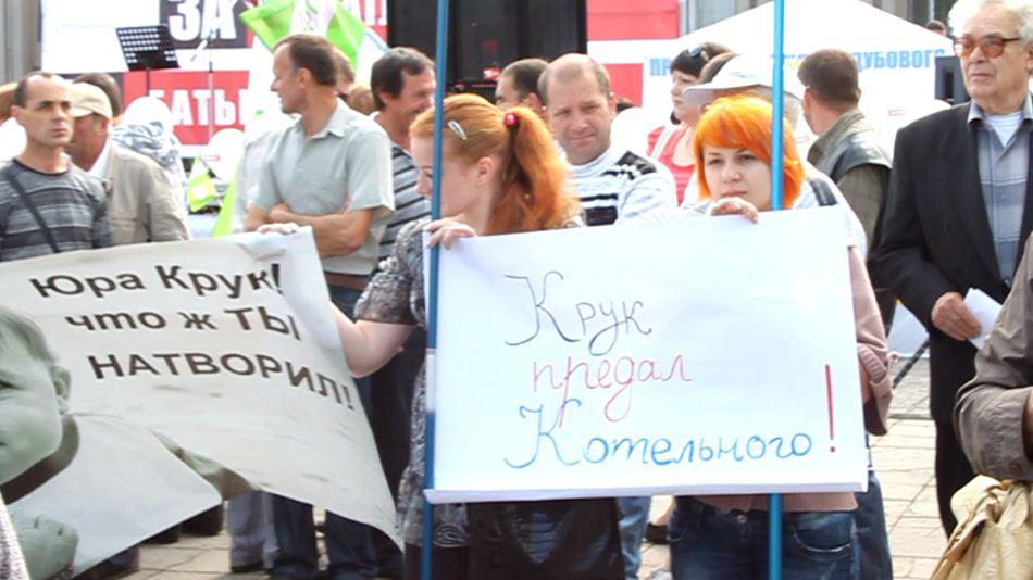 В толпе люди держали плакаты с лозунгами: «Крук предал Котельного» и «Юра Крук что ты натворил». Ранее Цензор.НЕТ сообщал, что руководство порта, чтоб не допустить митинг докеров, объявило о минировании (ФОТО + ВИДЕО).