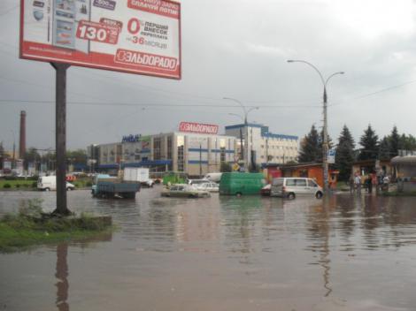 Сильный получасовой дождь вчера полностью залил отдельные районы Черновцов. Вода проникла даже в дома.