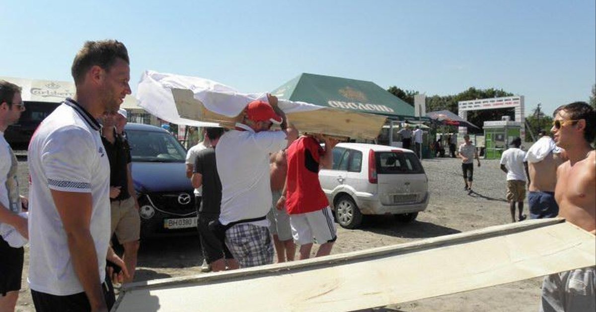 Английские фаны прошлись по Донецку с гробом. ФОТО