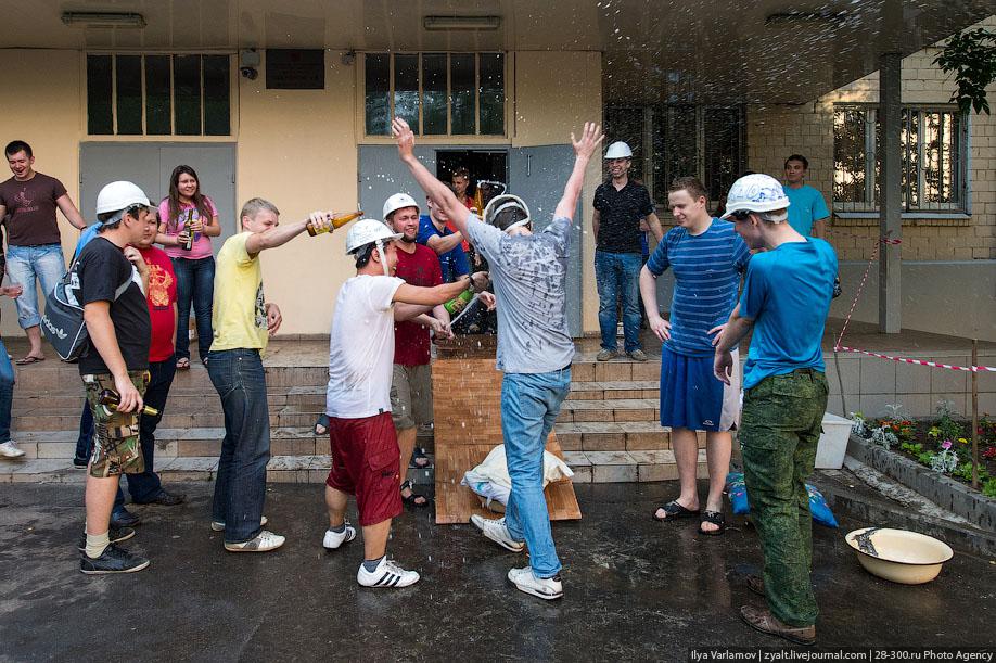 У студентов-бауманцев, наверное, самая яркая и веселая традиция отмечать защиту диплома. Никакие пограничники и ВДВшники с купаниями в фонтанах даже близко не сравнятся с Инженерами!