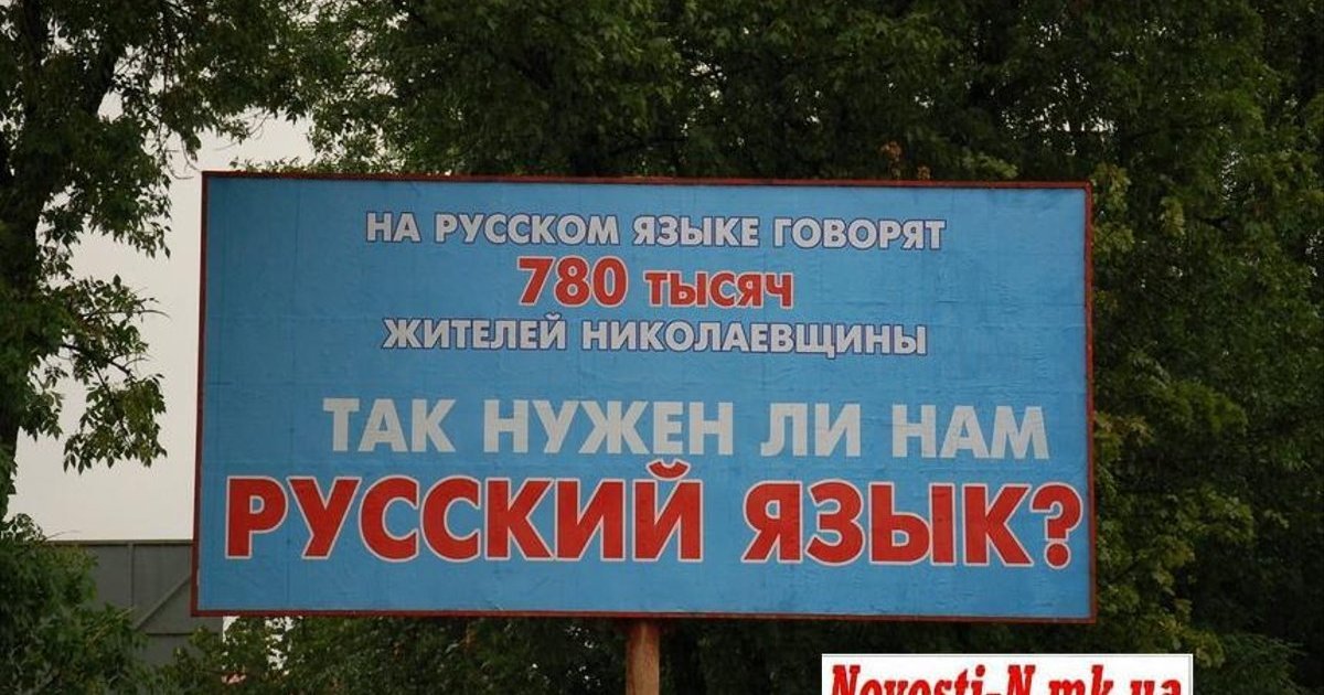 На улицах Николаева появились билборды, призывающие задуматься, нужен ли русский язык, если большинство жителей Николаевщины разговаривают на русском.