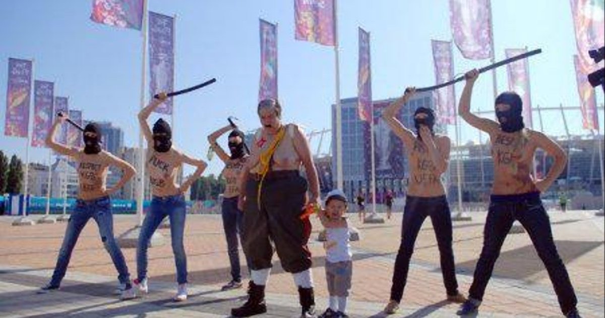 Девушки из FEMEN провели "заключительную" акцию протеста против Евро-2012.