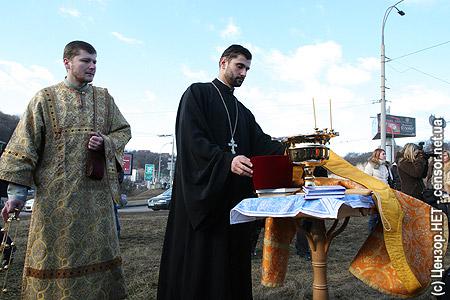 Процедура освящения была проведена в присутствии начальника Департамента ГАИ МВД генерал-майора Сергея Коломийца.