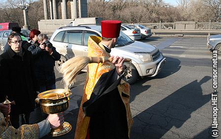 Украинская православная церковь по просьбе Государственной автомобильной инспекции Киева освятила сегодня мост Патона, сообщает пресс-служба Министерства внутренних дел.